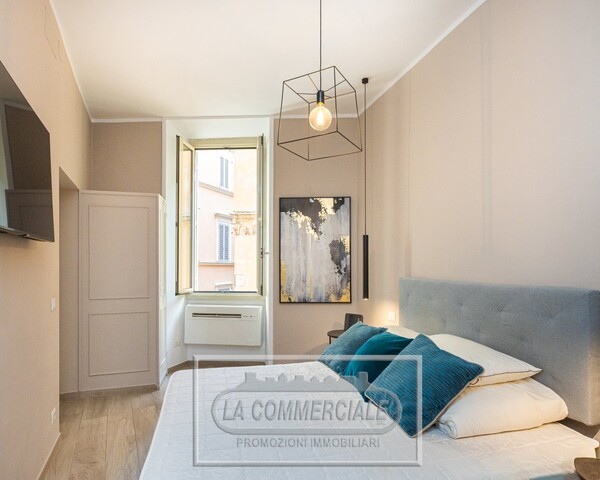 NO USO RICETTIVO A pochi passi da Piazza Navona con la sua splendida Fontana dei Quattro Fiumi, da Piazza Farnese e da Campo de’ Fiori, immerso nel centro storico di Roma, si trova Via del Governo Vecchio. Ciò che colpisce non è solo la posizione strategica di questa area della città, ma è anche l’atmosfera allegra e positiva che si percepisce nel camminare fra le botteghe artigiane, i negozi e i ristorantini presenti. In un bel palazzetto d’epoca provvisto di ascensore, proponiamo in locazione un appartamento molto luminoso, di circa 55 mq, con affaccio totalmente esterno e d’angolo, che gli consente una vista molto gradevole sulle strade circostanti che si incrociano e che sono molto caratteristiche. L’immobile, completamente ristrutturato e arredato, pronto per essere abitato, è composto da un saloncino con angolo cottura arredato, una camera da letto con armadi a muro, un bagno con finestra ed è provvisto di aria condizionata estiva ed invernale. Questo appartamento rappresenta un’opportunità piacevolissima nel suo genere per vivere nel profumo antico di Roma, ed è per questo che potrebbe essere molto adatto, oltre che come propria abitazione, anche come pied-à-terre.