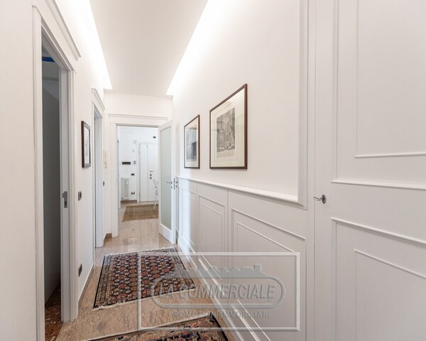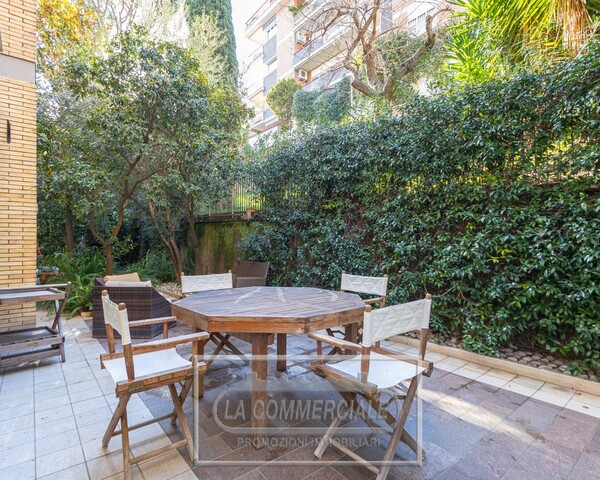 The property is located in the heart of Balduina, one of Rome's most strategic and sought-after residential areas, offering excellent comfort and quality of life. It is highly appreciated for its location, proximity to the Prati district, Vatican City and the historic center. The area is characterized by well-maintained buildings, tree-lined streets and a peaceful environment, while offering all the main amenities within easy reach: supermarkets, shops, pharmacies, schools, bars and restaurants. It is well connected to the rest of the city thanks to the bus network and the proximity of Metro line A (Cipro and Valle Aurelia), as well as the Valle Aurelia railway station. Green areas such as Parco del Pineto are within easy reach, ideal for leisure time. Located on the second floor of a building with concierge service and elevator, we offer for sale a renovated apartment in excellent condition, comprising: an entrance hall, a living room, three bedrooms, a small bedroom, a kitchen, two bathrooms, a balcony of approximately 23 square meters and a tree-lined roof garden of approximately 80 sqm, rich in plants and flowers. It is important to note that the beautiful garden, thanks to its privacy, allows you to spend time relaxing, as well as eating outside or welcoming guests, with whom you can enjoy a truly comfortable space. Rome is certainly a city that, thanks to its climate, allows you to enjoy such a space for a large part of the year. The property is completed by a 4 sqm cellar and a single garage, which are very important amenities to have in areas of the city like this. The finishes and materials used are of the highest quality, such as the Trani marble floors in the living room and hallways, oak parquet in the bedrooms, porcelain stoneware in the bathrooms and modern yet retro-style terrazzo tiles in the kitchen. Outside, the garden has also been carefully designed, including the flooring, flower beds, green areas and furnishings. All the windows are double sliding and bottom-hung, with two components (wood on the inside and aluminum on the outside). The doors are made of solid beech, as are the bookcase in the living room, the convenient built-in wardrobes, and the paneling and wainscoting on the walls in the hallways. The entrance hall has a multi-level false ceiling, as do the adjacent corridor and other parts of the apartment. This property represents an excellent investment opportunity, whether you wish to use the apartment as your own home or to generate income.